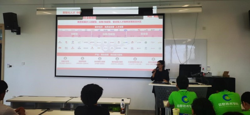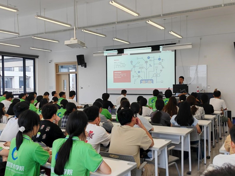 来自新道科技股份有限公司新工科事业部的王雍副总经理,以及王耀华工程师,给2024级新生做了题为“新一代信息技术的发展——重塑科技生态,新一代信息技术引领未来”的主题报告。报告主要分析了新一代信息技术行业现状,介绍了新一代信息技术技术,重点谈及云计算、大数据、区块链技术、分布式账本等技术,在各行业的应用,并就新一代信息技术发展过程中面临的问题、机遇与挑战,进行分析与分享。两位行业专家的分享,开拓了大家的视野,拉近了学校和行业的距离。