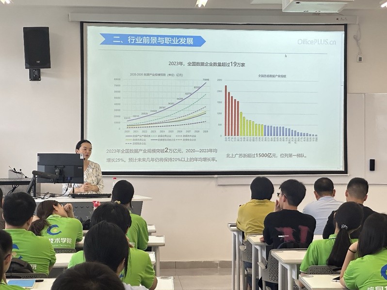 靖研老师随后对大数据专业进行了深入的介绍。她从行业前景、职业发展、师资力量、教学资源、成绩荣誉等多个维度,为新生们勾勒出了一个立体而全面的专业画像。通过靖研老师的讲解,新生们对大数据技术专业的认识更加深刻,对未来的职业道路也有了更加清晰的规划。